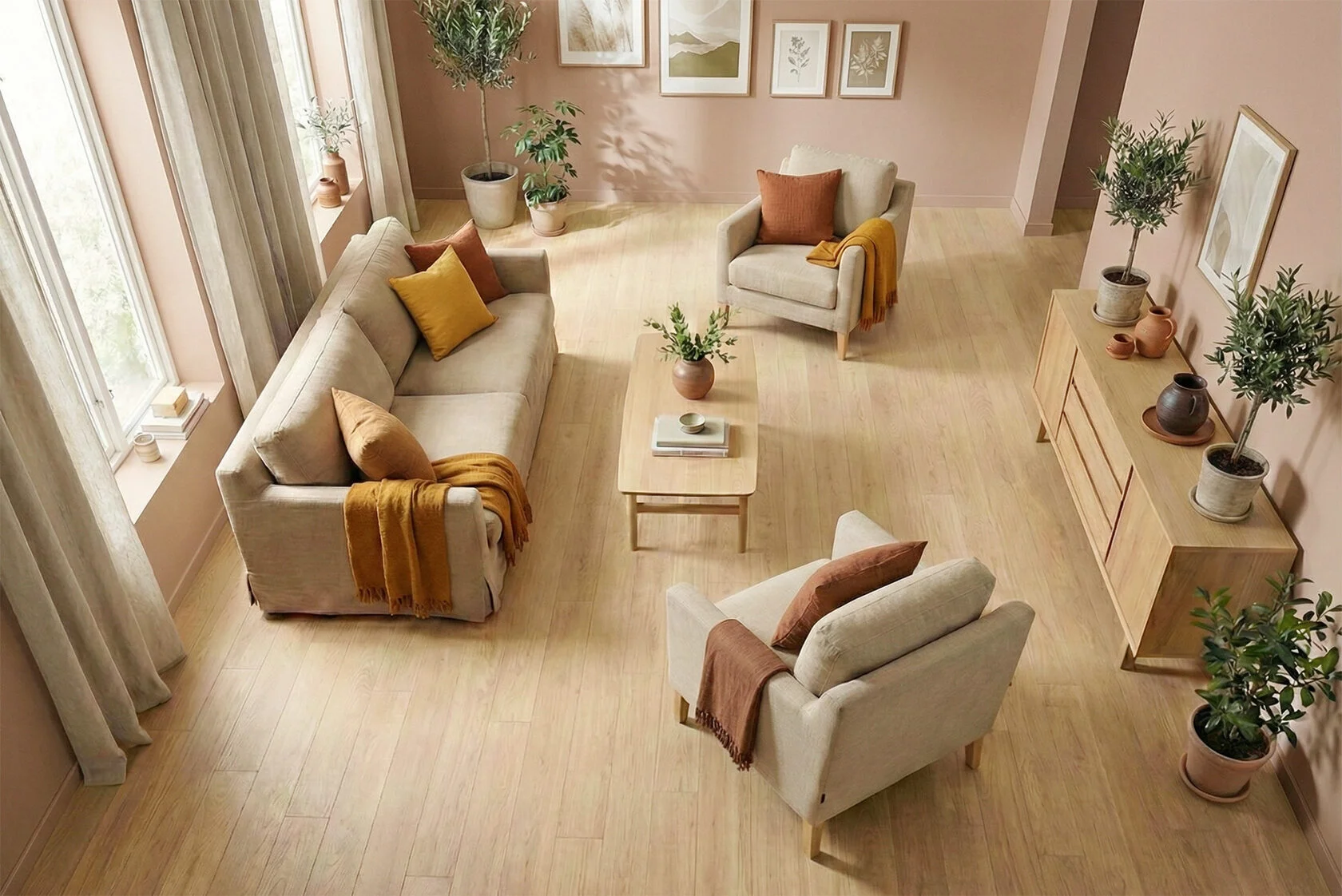 - Прибрежная эстетика — песочный оттенок ассоциируется с морским берегом, создавая расслабленную, светлую атмосферу.