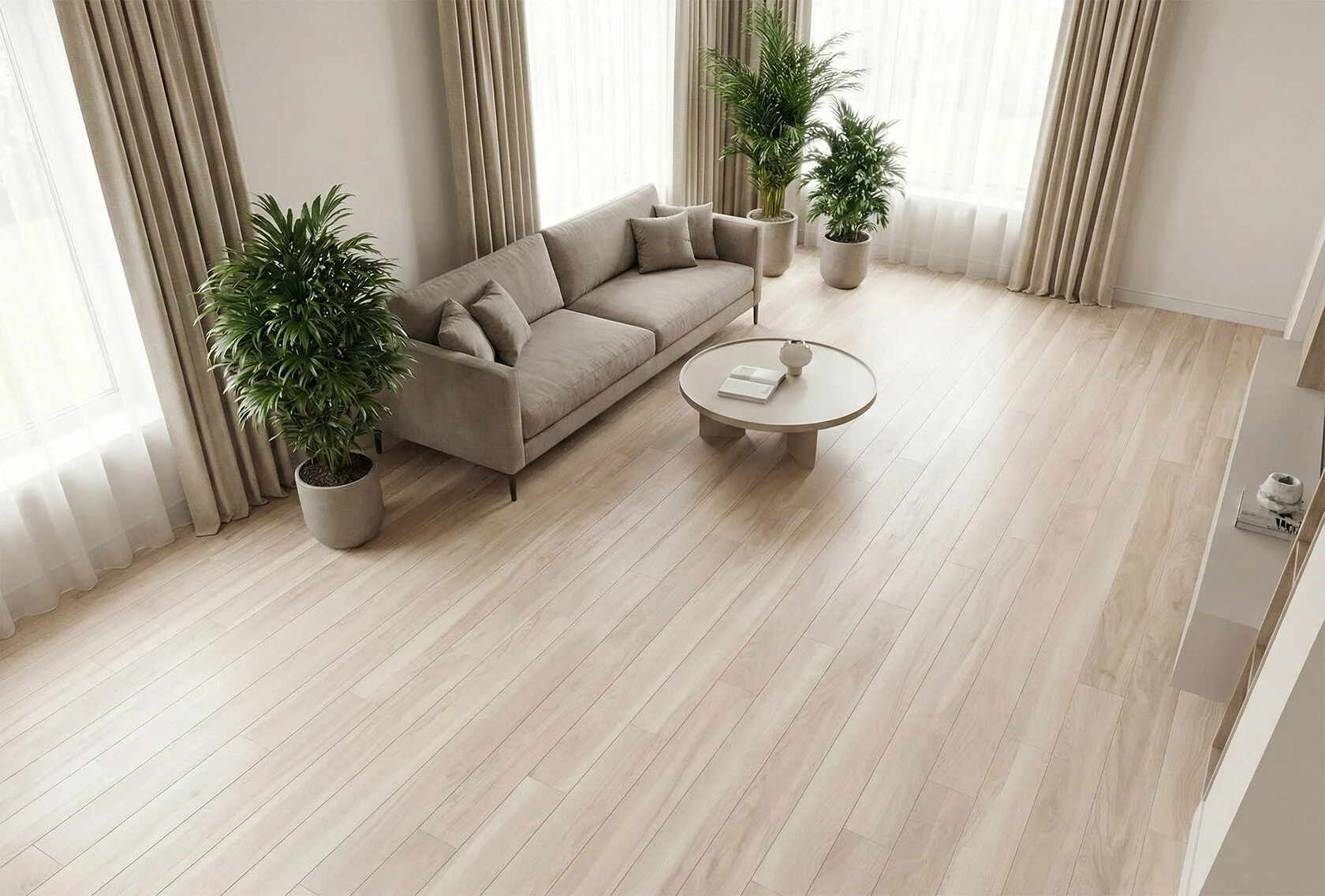 Технические характеристики профессионального уровня Покрытие относится к 33 классу износостойкости по стандарту EN 13329, что гарантирует устойчивость к интенсивным нагрузкам в жилых, офисных и коммерческих помещениях. Основа из высокоплотной HDF-плиты (плотность 890 кг/м³) обеспечивает стабильность геометрии, эффективное шумопоглощение и сопротивление деформациям — этот показатель на 50% выше, чем у стандартного ламината. Толщина панели 10 мм позволяет выполнять бесшовную стыковку с керамогранитом и плиткой без использования переходных порожков.