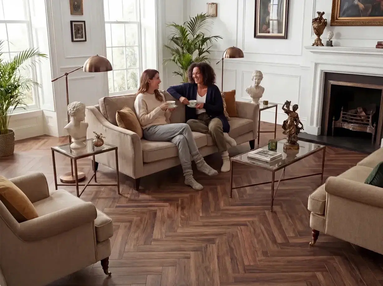 Ламинат FLOORFORT серии Walnut Tree в декоре «Орех Кембридж» (артикул 19023) — это флагманское решение для тех, кто ищет напольное покрытие с аутентичной эстетикой натурального дерева и инженерной надёжностью премиум-сегмента. Благородный средне-коричневый оттенок с холодными сероватыми нотами и выразительной текстурой древесных волокон создаёт атмосферу уюта и изысканности, гармонично дополняя интерьеры в стилях неоклассика, сканди, лофт и современный минимализм.